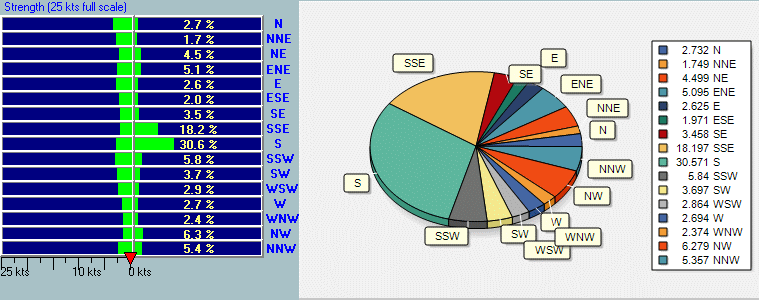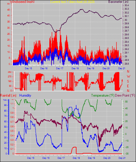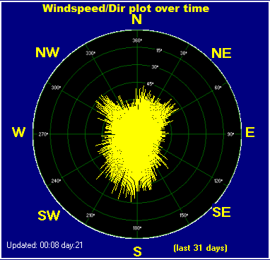 Maximum windspeed = 21.9 mph from 233°( SW) on day 11 at time 17:05