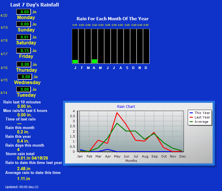 Maximum rain per minute = 0.011 in on day 17 at time 19:36